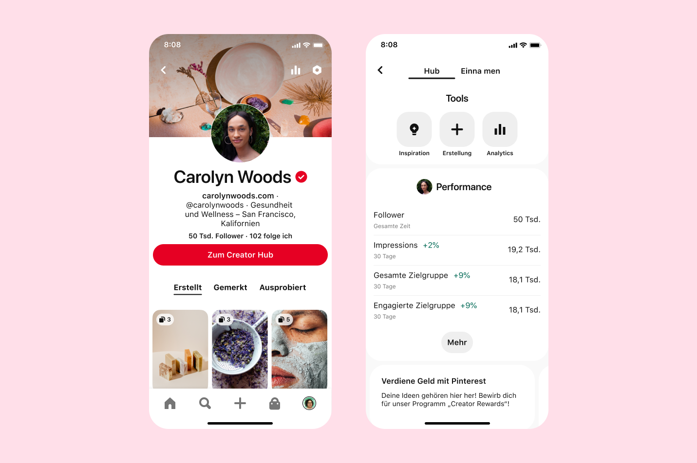 ​​​​​​​Die neuen Funktionen ermöglichen es Content Creators, qualitativ hochwertige Inhalte zu veröffentlichen, die zu einem wertvollen und nachhaltigen Austausch mit ihren Communities führen. Außerdem können Creators jetzt für ihren inspirierenden Content bezahlt werden. Die neuen Erfahrungen bieten jedem auf Pinterest jetzt noch mehr Möglichkeiten zum Entdecken, Erstellen und Shoppen von Creator-Content.